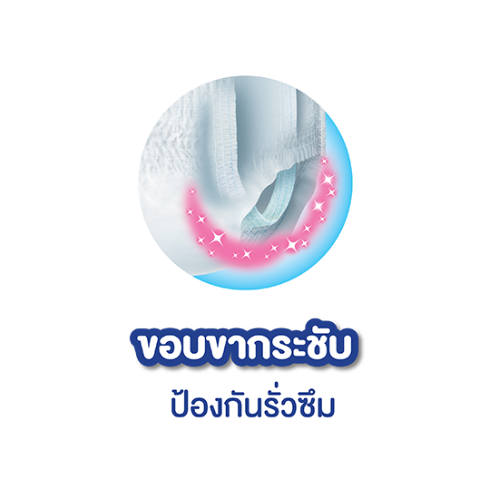 ใส่ง่ายด้วยขอบเอวยืด 2 เท่า*3 มีขอบเอวระบายเหงื่อรอบด้าน ลดความอับชื้น มาพร้อมแอนตี้แบคโพลิเมอร์ ที่ช่วยลดการสะสมของแบคทีเรีย ซึมซับ 9แก้ว*1 หรือ 900cc ให้คุณสัมผัสความสบายใจและสบายตัวตลอดวัน